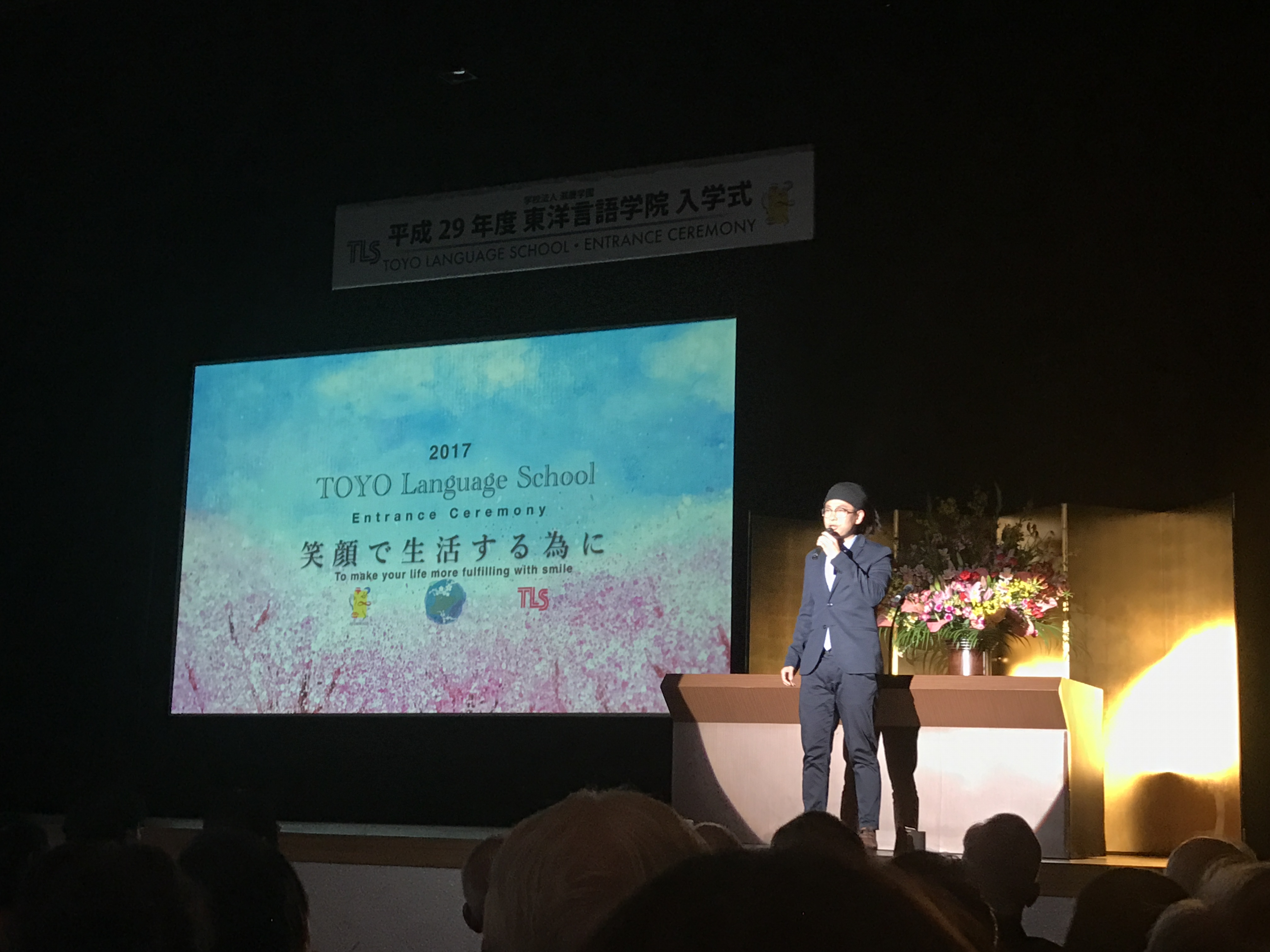 東洋言語學院校長德山隆先生和滋慶總長浮舟先生致辭,東洋言語學院作為一所語言學校,每年都迎來世界各地熱愛日本喜歡日本文化的學生,大家聚集在一起是緣分,在這里也能認識很多國際友人,大家一起學習交流,學好一門語言關鍵在于交流和溝通上,東洋結合自身性質完美發(fā)揮了“交流·合作·語言”的特點。祝愿各位新生能夠在東洋度過未來美好的時間,東洋全體員工和大家約定全力支持和提供大家?guī)椭?/p>