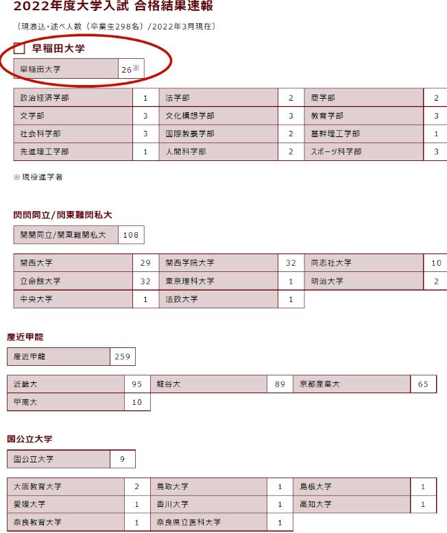 而除了早稻田大學(xué),關(guān)西地區(qū)私立大學(xué)中的“關(guān)關(guān)同立”以及一線私立大的“近產(chǎn)甲龍”合計有367人次合格。在早稻田攝陵這樣的高中學(xué)習(xí),想要進入一所理想的大學(xué)可謂輕松愉快!