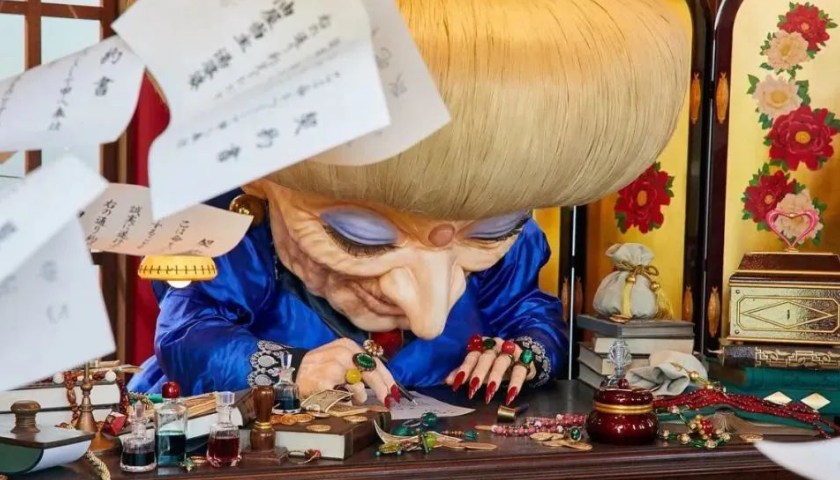 大倉庫中還有一些獨立區(qū)域,也是盡可能將動畫搬進現(xiàn)實中。每個場景的細節(jié)都誠意滿滿。比如湯婆婆的辦公室,完全按照電影里的比例打造。而且為了盡可能做到逼真,湯婆婆的頭發(fā)是用人工毛發(fā)一根根編織上去的。連千尋打工簽下的契約書,都被1:1完美復刻。