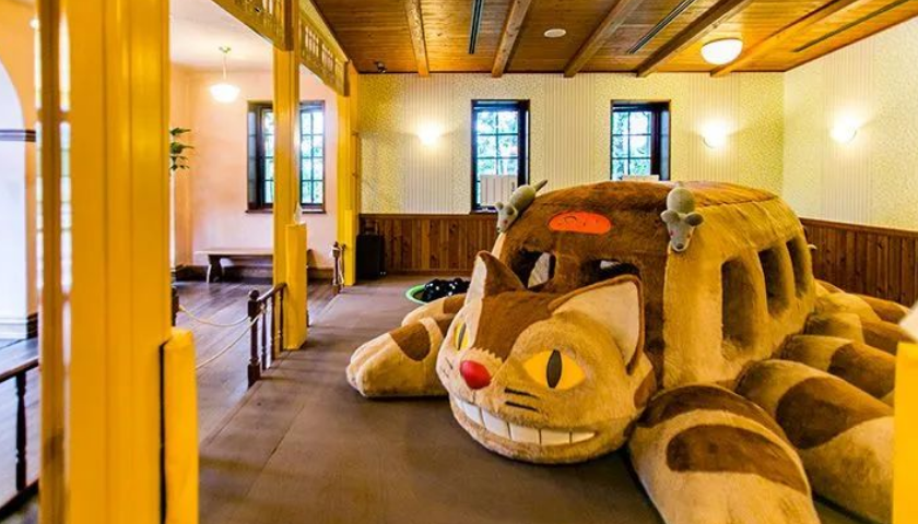 比如大倉庫里有一片貓貓浴場,只面向小朋友開放;和吉卜力的三鷹之森美術館一樣,只有孩子們才有資格乘坐《龍貓》中極受歡迎的貓貓車巴士,前往浴場玩耍;一只睡著的龍貓藏在兒童區(qū)的角落里,是孩子們共同保守的秘密……