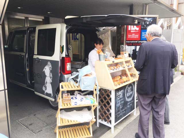5月12日,大阪在滋慶學(xué)園集團(tuán)的總部前面由擔(dān)任移動(dòng)收貨的大阪烹飪甜點(diǎn)專業(yè)學(xué)院的畢業(yè)生佐藤清惠駕駛的面包專賣(mài)車(chē)出現(xiàn)在了總部第2大樓前面。