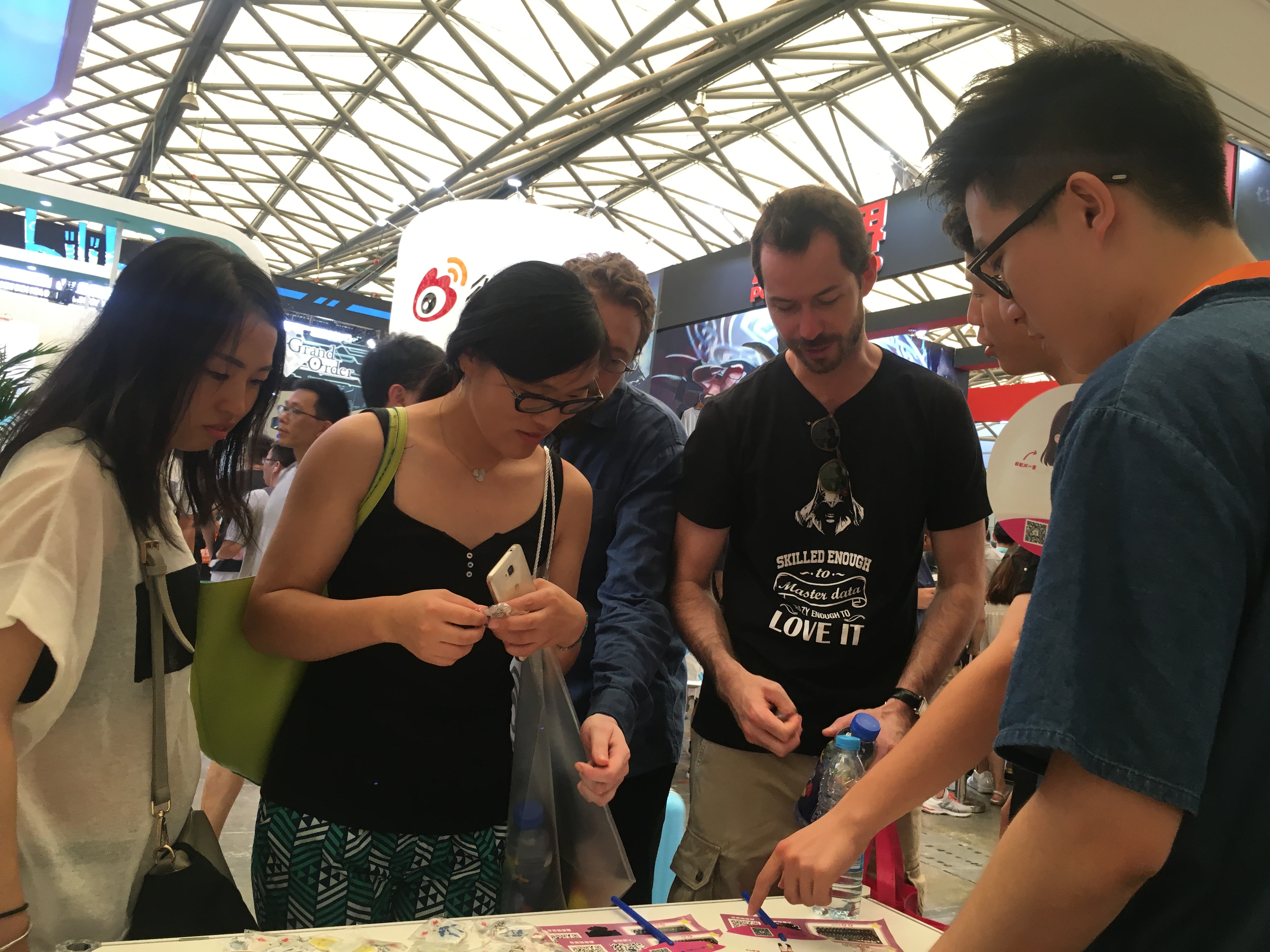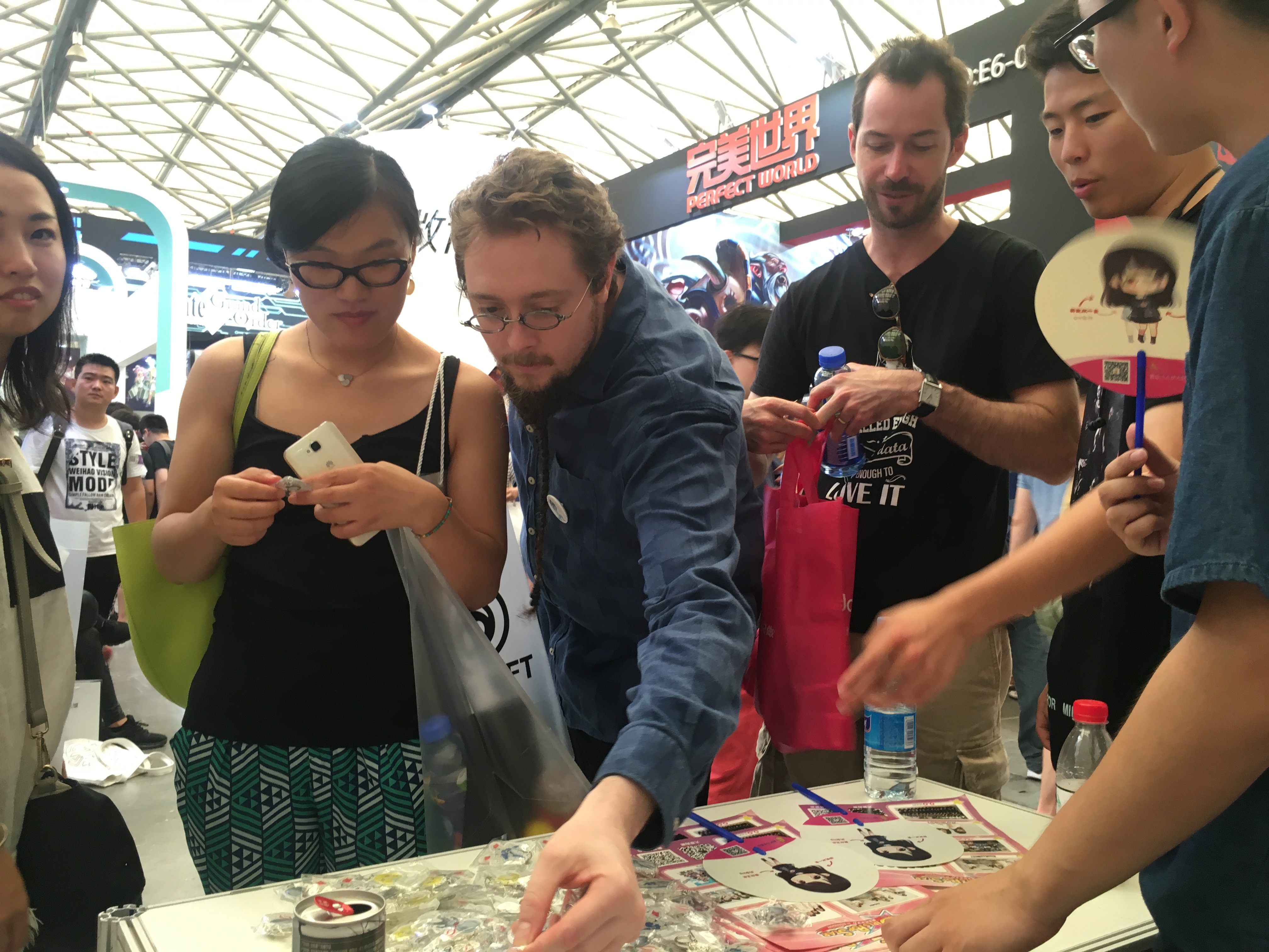 這次我們準(zhǔn)備了鑰匙扣、符號發(fā)夾、馬賽克眼鏡、扔狗和吐司抱枕作為禮品,四天下來我的感想就是……恩……完全不夠啊