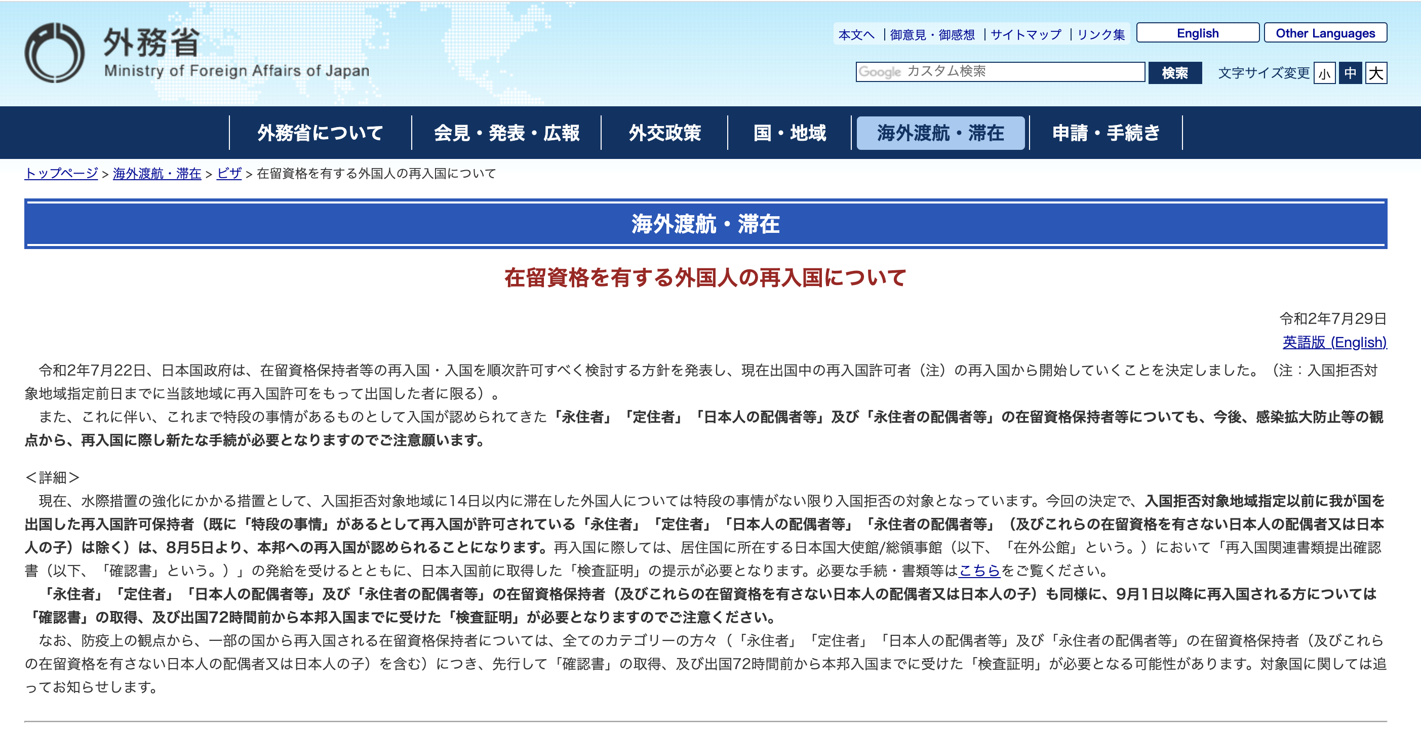 日本外務省7月29日晚間發(fā)布!將從8月5日開始允許滿足條件的持有日本在留資格的駐派人員及留學生入境。