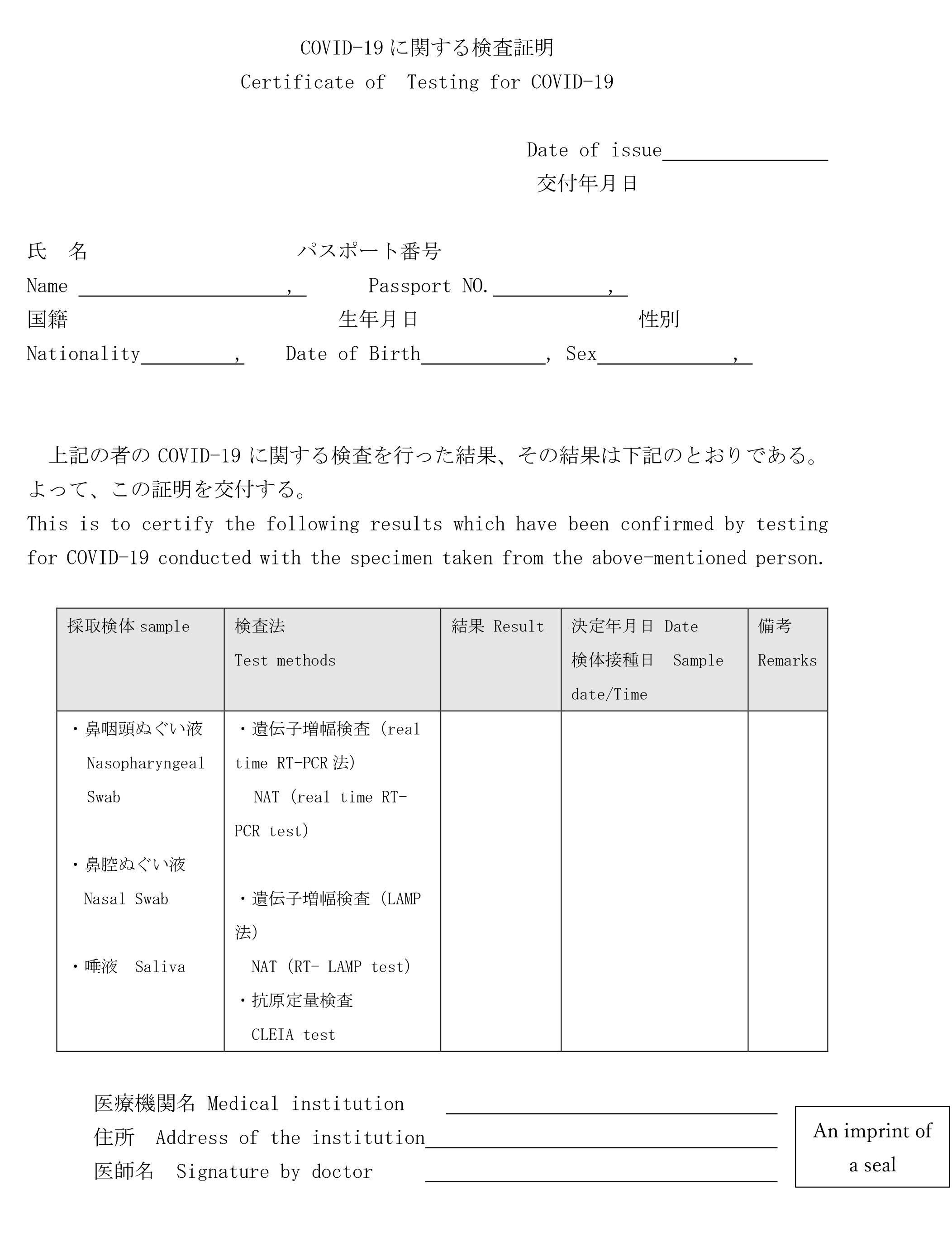 PS:日本外務省官網(wǎng)提供了檢測證明的參考模板。陸續(xù)各國使領館官網(wǎng)也會有的。