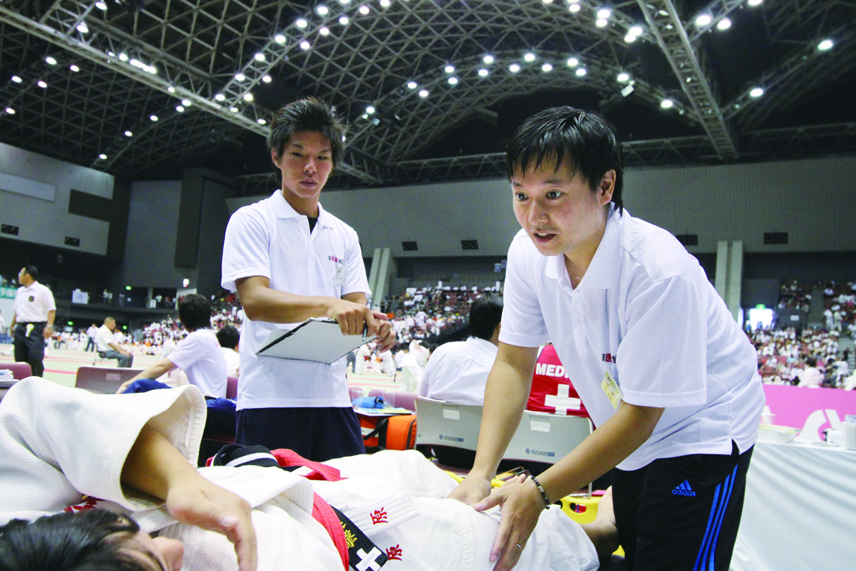 在爭奪日本高校柔道、劍道第一的比賽中,實施救護支援。對受傷選手進行救治的產(chǎn)學協(xié)同項目。