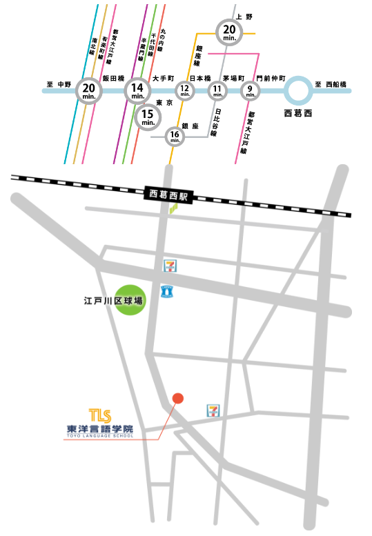 東洋言語學(xué)院于1988年建校,1992年,學(xué)院成為滋慶學(xué)園集團(tuán)(JIKE GAKUEN GROUP)下屬的語言學(xué)校。滋慶學(xué)園集團(tuán)除東洋言語學(xué)院外,還擁有設(shè)計(jì)、音樂、廣播、計(jì)算機(jī)、醫(yī)療、福利等70所專門學(xué)院,可接收各國的留學(xué)生。作為東洋言語學(xué)院的學(xué)生可以優(yōu)先進(jìn)入滋慶學(xué)園的專門學(xué)院學(xué)習(xí)。 學(xué)校離繁華的東京站只需15分鐘的路程,交通十分便捷附近還有東京迪尼斯樂園,打工方便。